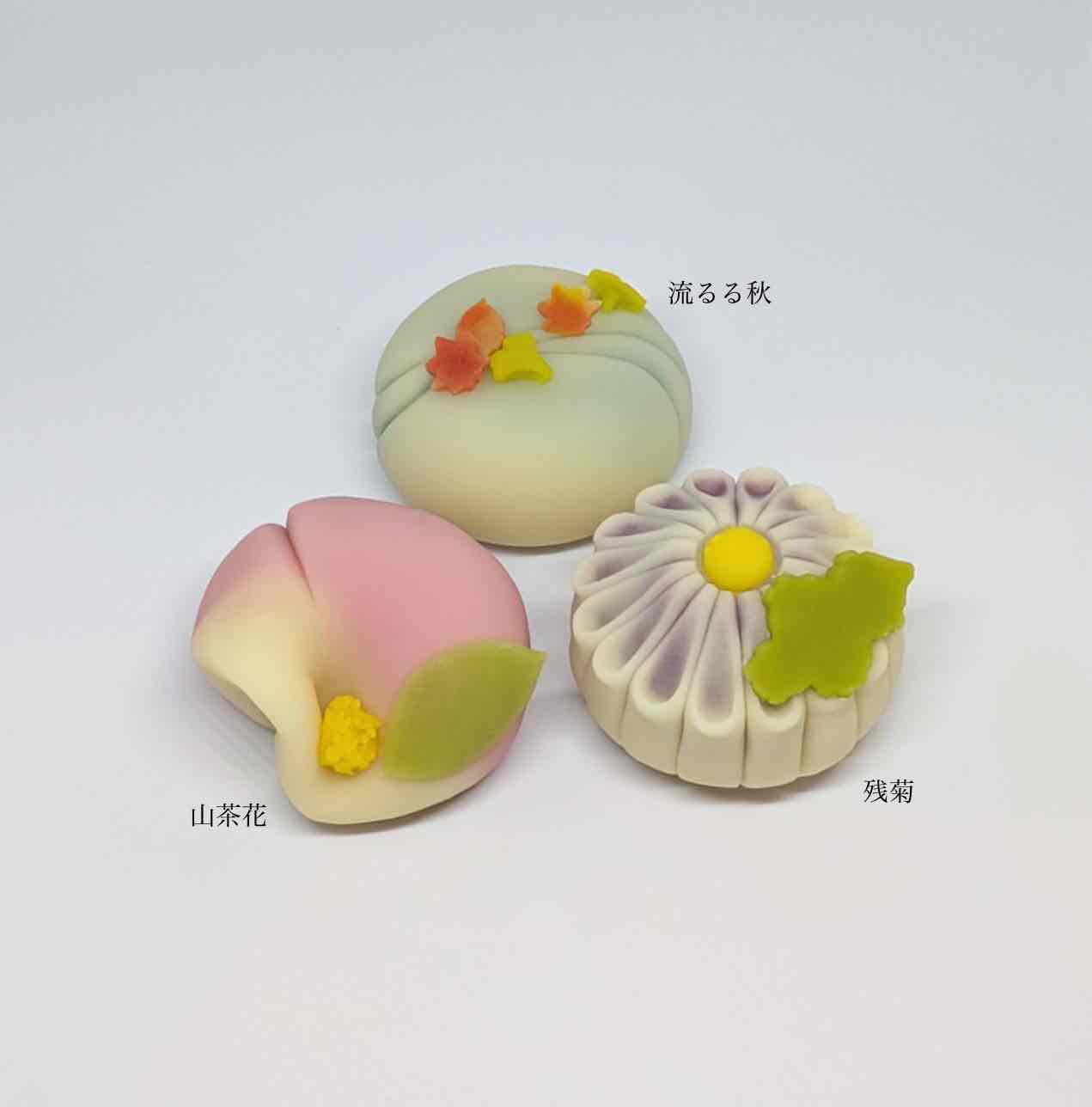 11月にお作りする練り切り&季節の練り切りレッスンは「流るる秋ー栗餡」「残菊ーこし餡」山茶花ー白餡」です。